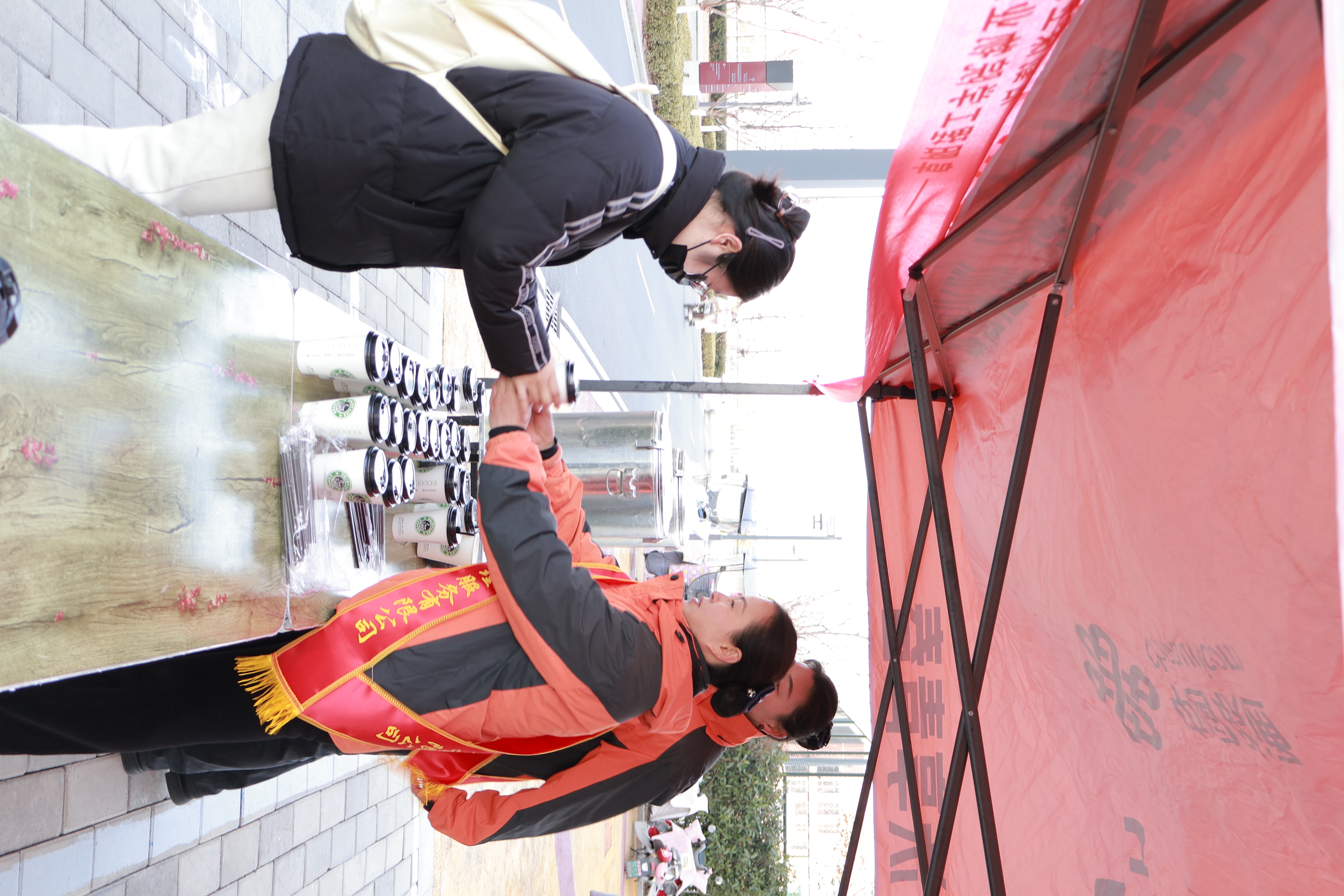 活動(dòng)中,物業(yè)工作人員擔(dān)當(dāng)“暖心使者”,在校園食堂入口師生流量密集區(qū)域,設(shè)立“冬日暖心服務(wù)點(diǎn)”,為師生免費(fèi)提供熱姜茶。一杯杯熱氣騰騰的姜茶,不僅有效驅(qū)散了冬日嚴(yán)寒,更是物業(yè)服務(wù)的暖心之舉,體現(xiàn)了物業(yè)對(duì)廣大師生的細(xì)致關(guān)懷,贏得了師生們的一致好評(píng)。